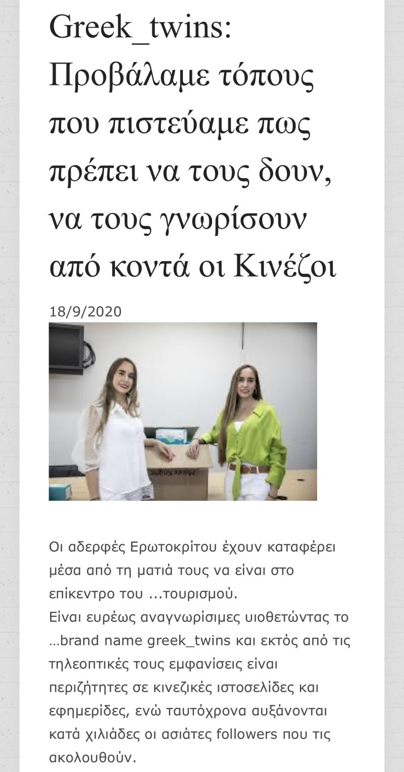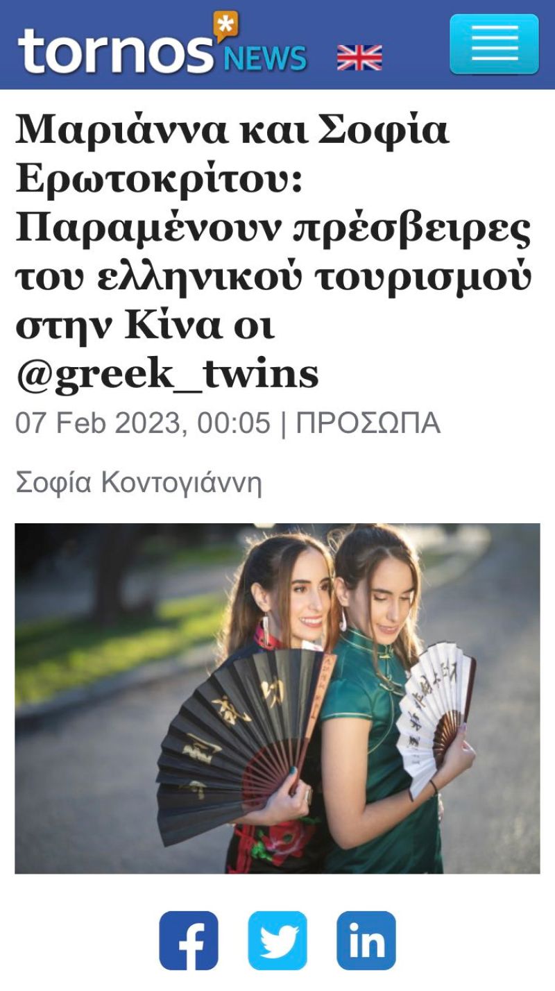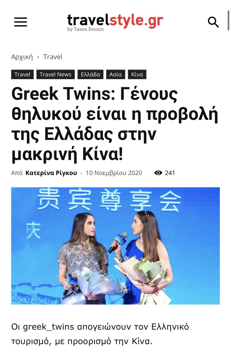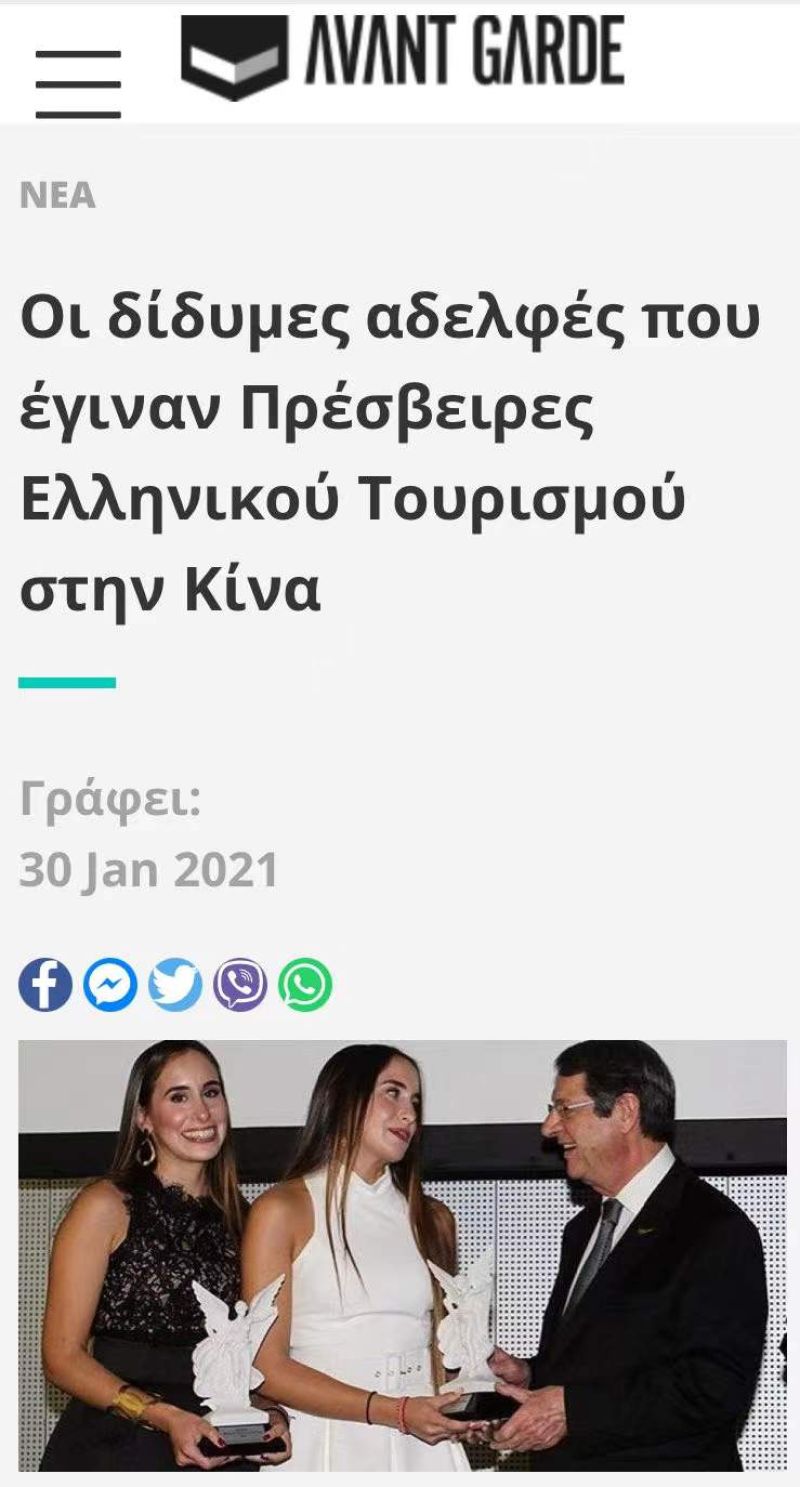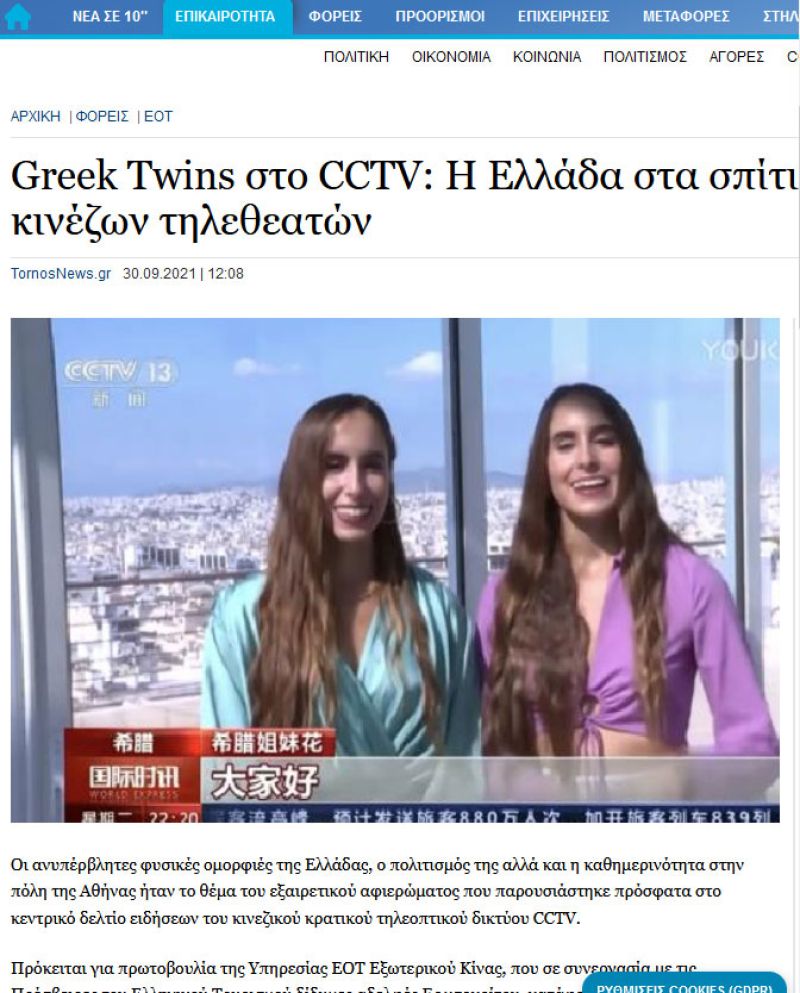 Greek twins appointed "Ambassadors of Greek Tourism in China"