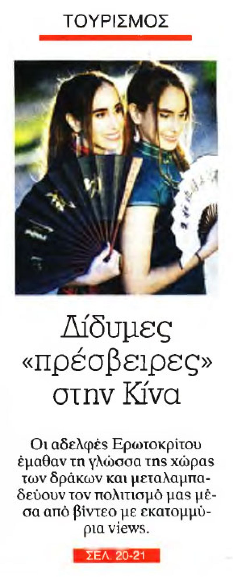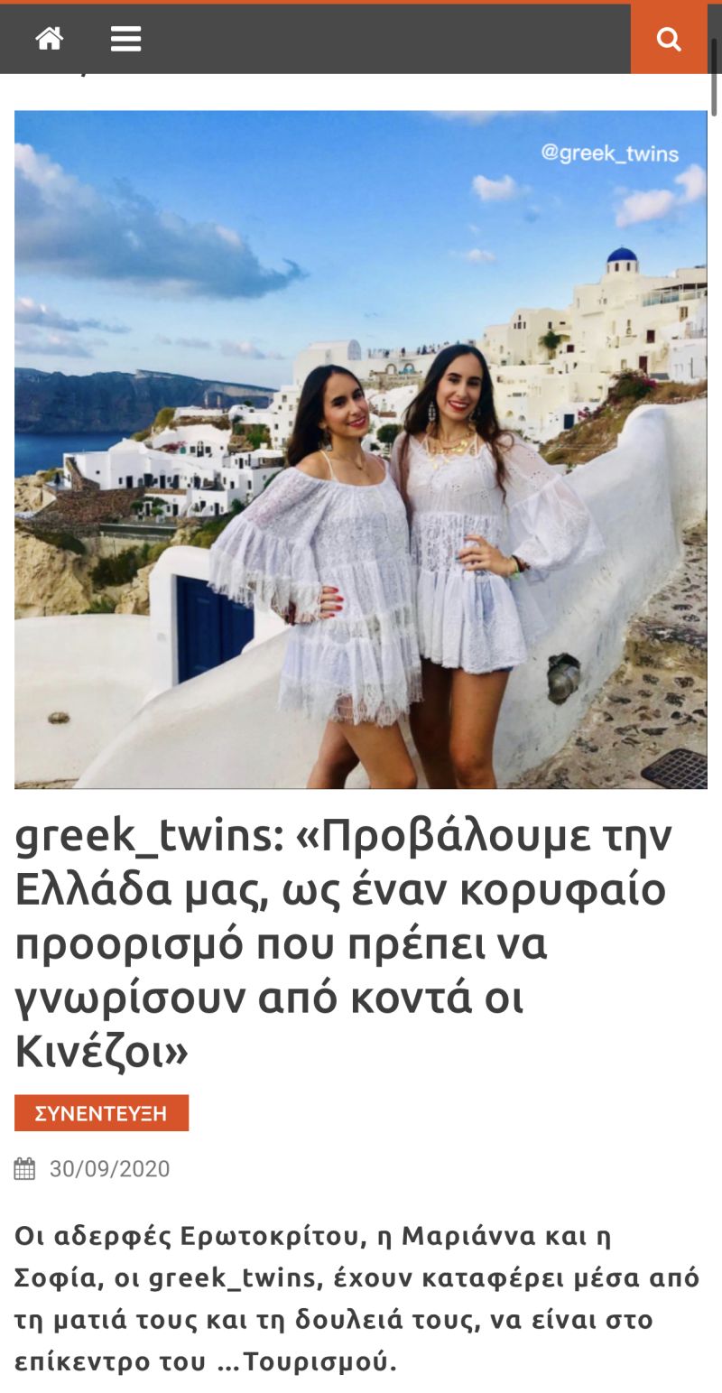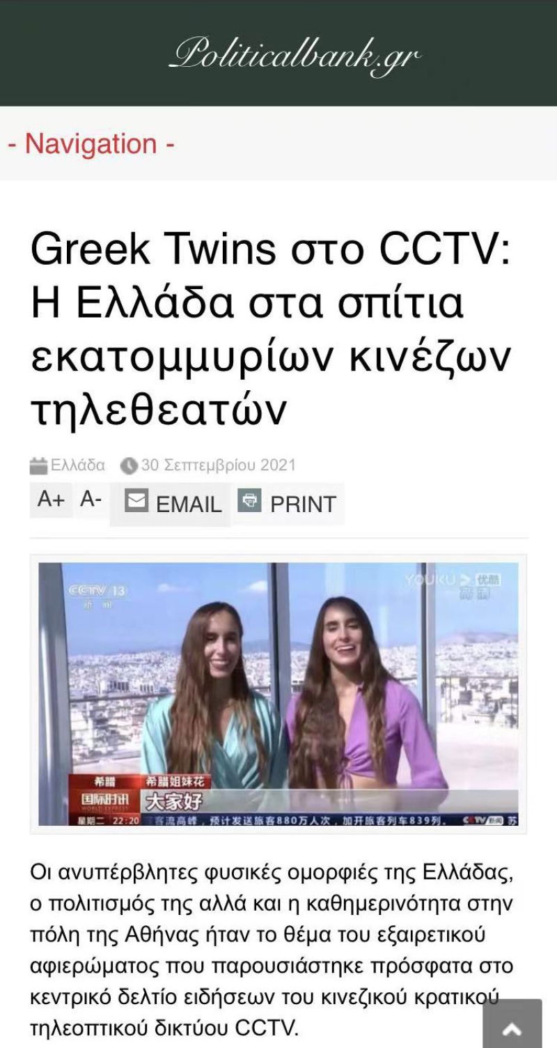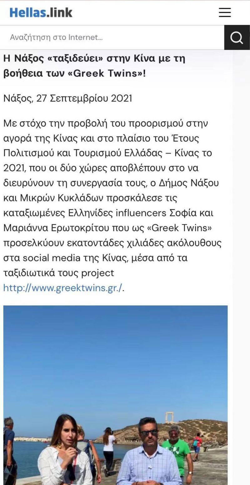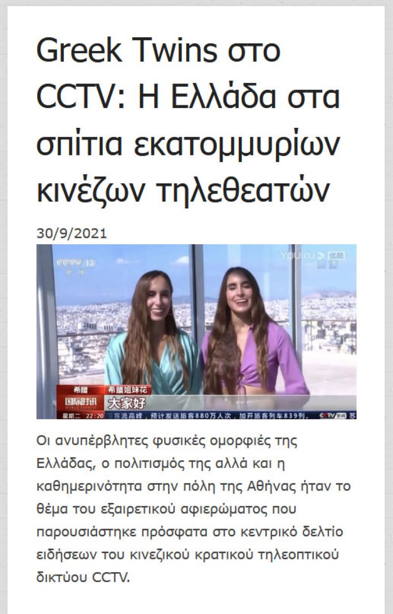 Greek twins appointed "Ambassadors of Greek Tourism in China"