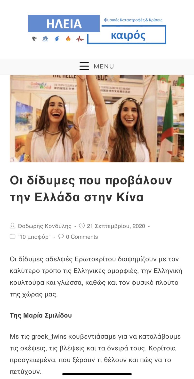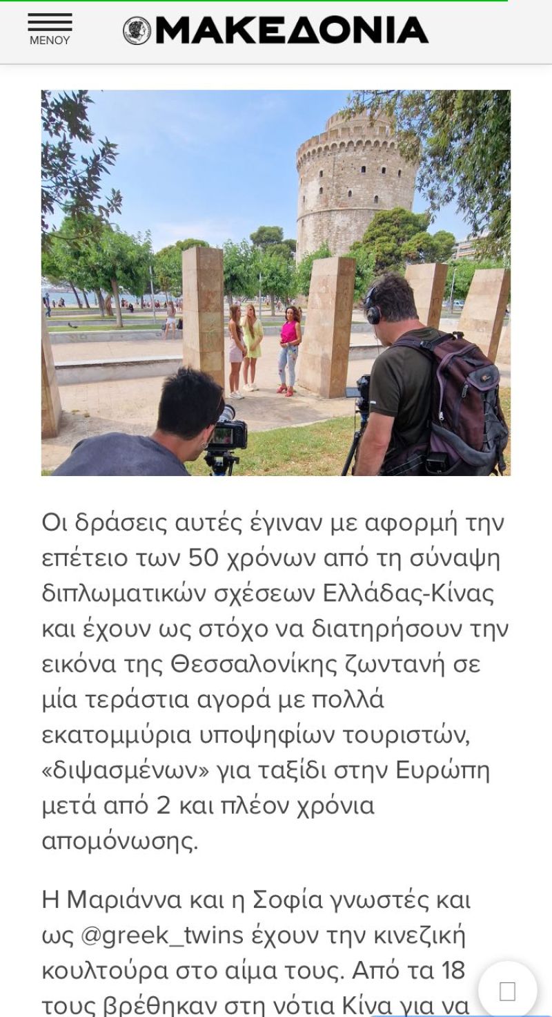 Through our social media activities and the recognition we have in China, Greek TV presenters named us as the Greek Amabassdors of Tourism and Culture in China