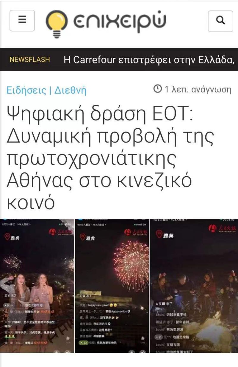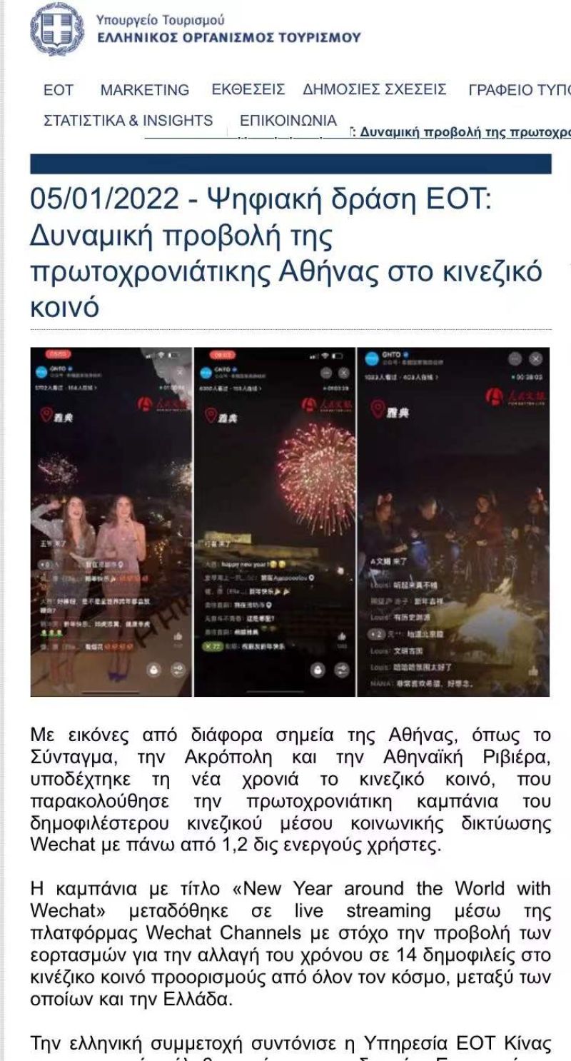 Initially, we begun by uploading videos, along with live streaming from Greece in Mandarin, focusing on popular tourist spots, the traditional food we sampled, and the experiences we had. To our surprise, we started receiving hundreds of positive comments and requests online, especially from young people in China and so we decided to do more videos to promote our country. Following regular live streaming from Greece and China in the popular Netease.com platform, we never envisioned that in such a short time we would secure a warm and friendly audience that was eagerly anticipating to see our videos and live streamings and get to know everyday Greek life from the local point of view. Videos such as making a Greek coffee or preparing Greek pies in a Monastiraki bakery became very popular. Additionally, we were surprised to see the reception of a live streaming we did concerning the way local Chinese school students spent Chinese New Year in Athens, which reached 1.2 million viewers. Our videos on popular Greek islands such as Santorini, Paros, Naxos, Mykonos, Hydra, have also been viewed by hundreds of thousands of fans and continue to be popular and go viral on various social media and other platforms.